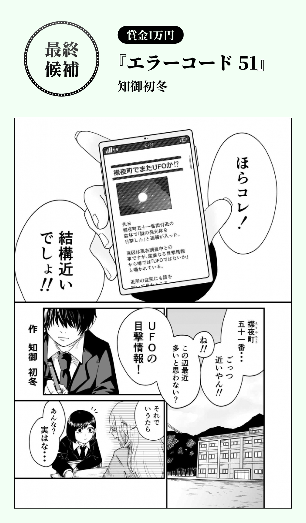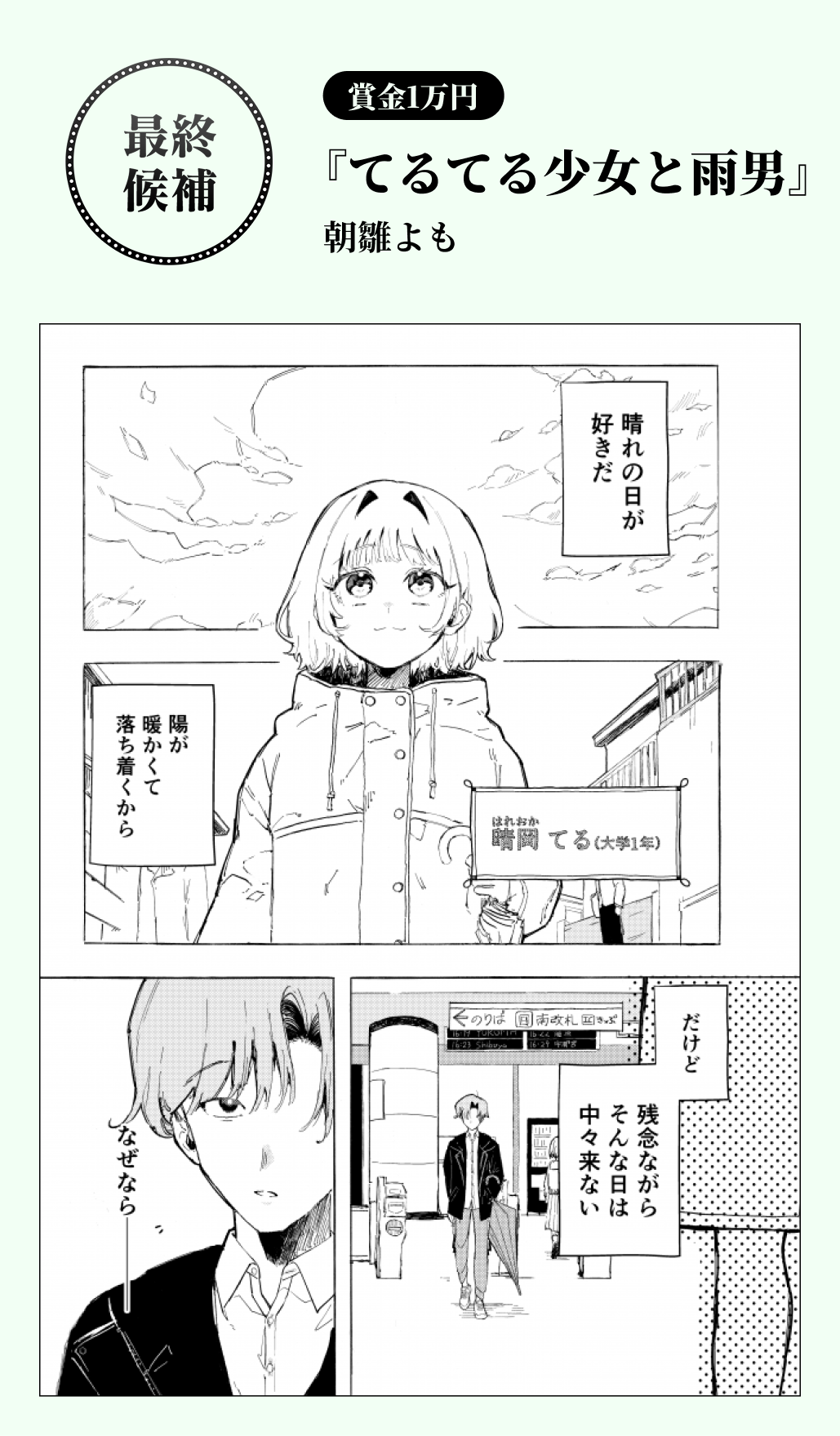 各部門の受賞結果はこちら! 【フリー部門】 最終候補3作品 【4ページ部門】 該当者なし 【画力部門】 該当者なし 4月期もたくさんの応募作をお待ちしております! 受賞作は順次、サンデーうぇぶり新人賞受賞作品にて掲載!